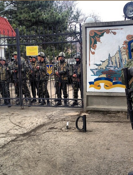 Τα οχήματα, που έχουν ρωσικές πινακίδες, περικύκλωσαν τη βάση, ενώ δεν επιτρέπουν στους Ουκρανούς στρατιώτες να μπουν ή να βγουν από την εγκατάσταση. Οι τελευταίοι, επίσης έχοντας βάλει γεμιστήρες στα όπλα τους, τοποθέτησαν ένα τανκ στην πύλη. Στο σημείο έχουν συγκεντρωθεί και πολίτες.