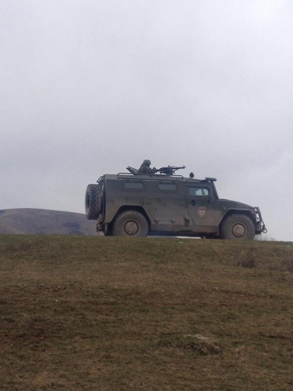 Οπως μετέδωσαν δημοσιογράφοι του Associated Press, εκατοντάδες ένοπλοι χωρίς διακριτικά έφτασαν έξω από τη βάση του ουκρανικού πεζικού στην πόλη Πριβολνόγιε, στην Κριμαία. Το κομβόι αποτελείται από 13 στρατιωτικά οχήματα, καθένα από το οποίο μετέφερε 30 στρατιώτες, και τέσσερα τεθωρακισμένα με οπλισμένα πολυβόλα.