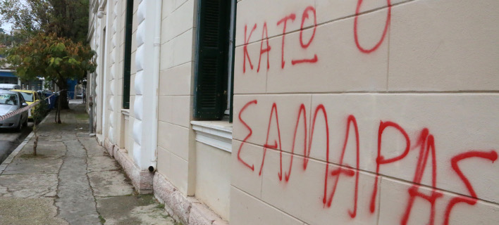 Τα συνθήματα υπογράφουν οι «Πολίτες ενάντια στην ανακήρυξη του Σαμαρά ως επίτιμο δημότη Ναυπλίου».